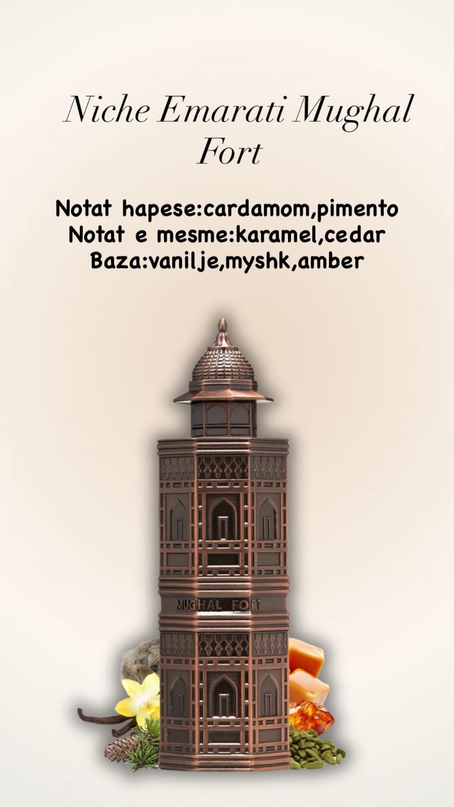 Niche Emarati Mughal Fort nga Lattafa Perfumes është një aromë orientale me vanilje për femra dhe meshkuj, që sjell një përzierje magjepsëse dhe të sofistikuar. E lançuar në vitin 2024, kjo aromë e re hapet me një shpërthim tërheqës të kardamomit të ngrohtë dhe piperit pikant, duke krijuar një fillim që ndez shqisat. Zemra e parfumit të përfshin me ëmbëlsinë kremoze të karamelit dhe elegancën e drurit të kedrit, ndërsa baza mbyll aromën me një përqafim të butë të vaniljes, ambrës së artë dhe myshkut sensacional.