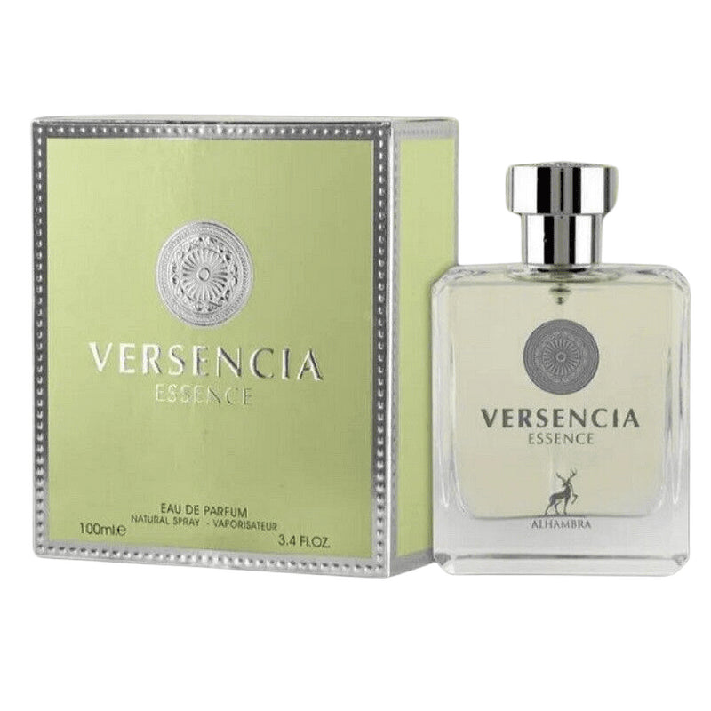 Versencia Essence nga Maison Alhambra – një aromë e freskët dhe elegante për femra, e lançuar në vitin 2022. Nota e parë përfshin freskinë e mandarinës së gjelbër, bergamotit, agrumeve, frutave, dardhës dhe fikut. Notat e mesme përzihen në mënyrë të përkryer me narcisin, kardamomin, jaseminin dhe zambakun, duke shtuar një ndjesi delikate dhe joshëse. Baza e ngrohtë me dru kedri, sandalin, myshkun dhe ullirin krijon një përvojë të rafinuar që zgjat gjatë gjithë ditës.