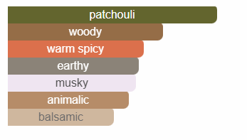 Notat bazë: Patchouli bëhet më i thellë dhe magjepsës me ndihmën e cibetit ekzotik dhe marshmallow-t të ëmbël që mbyllin aromën me një prekje të butë dhe sensuale.
